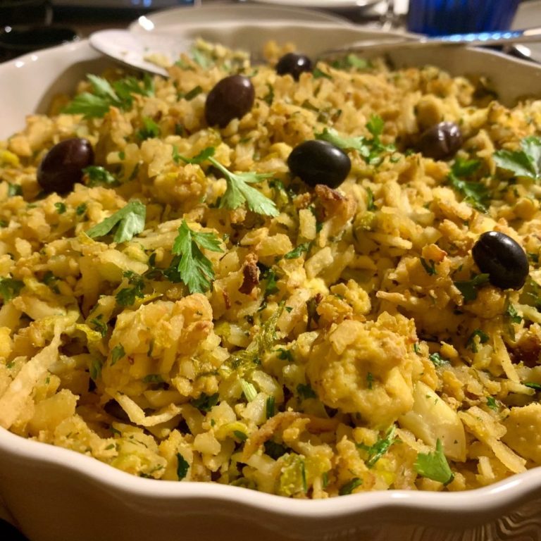 “Tofu à Brás” (tofu, leeks, potato, saffron and olives) or wild mushroom and asparagus risotto